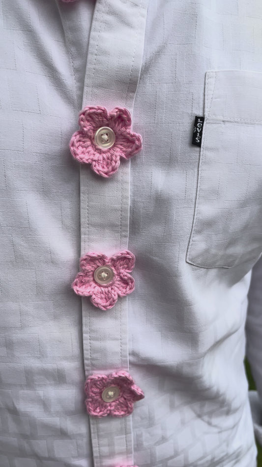 Pastel combination flowers crochet button accessory (handmade) [light pink, purple, yellow] assorted