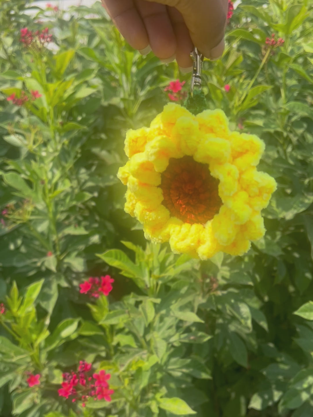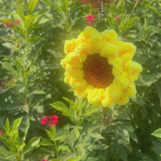 Add a pop of whimsical charm to your bag with our handmade double petal sunflower bag charm! This delightful accessory features a beautiful sunflower design in a playful and unique aesthetic. Perfect for adding a touch of floral fun to your everyday look.