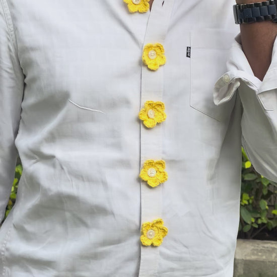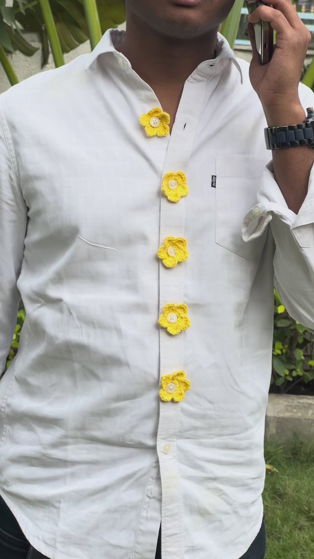 Feeling stuck with your regular old shirt? Spice things up with these handmade Crochet button covers. Upgrade your wardrobe without sacrificing space. Get multiple for endless outfit options without breaking the bank!